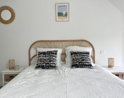 Cette grande chambre familiale d’une capacité de 3 personnes, bénéficie d’un accès direct sur le jardin par sa petite terrasse idéalement orientée. Elle dispose d’un lit double en 160 et d’un lit simple en 90.
