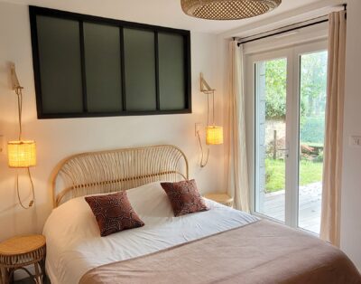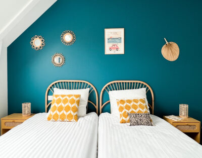 Cette chambre lumineuse et confortable, d’une superficie totale de 26 m² peut accueillir jusqu’à 4 personnes. Son atmosphère marine vous rappellera que vous êtes en bord de mer. Elle dispose d’un lit double en 160 et de deux lits simples en 80. Idéale pour des familles avec enfants.